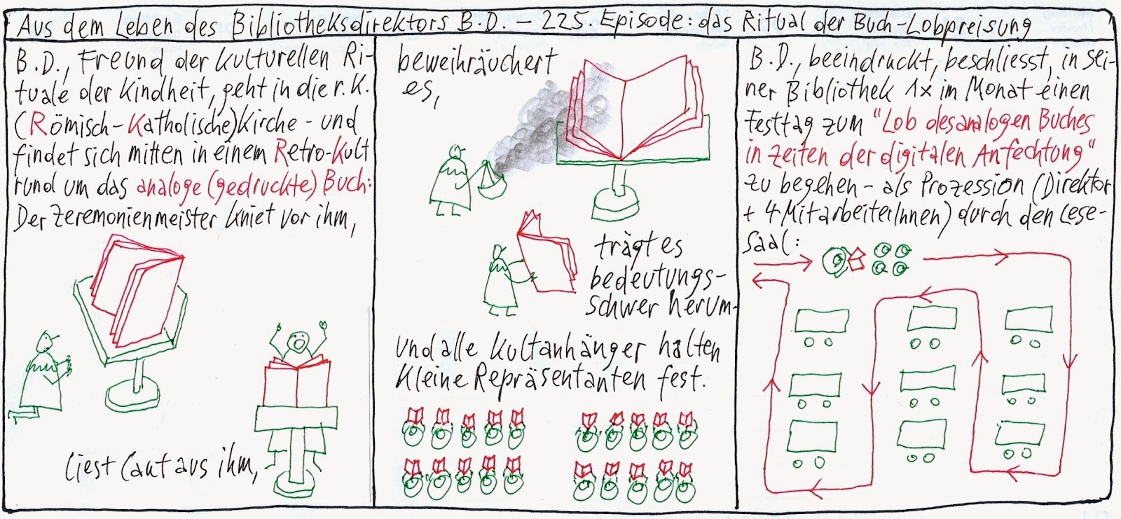 BIBCOMIC 225: das Ritual der Buch-Lobpreisung Posted on 19. 01. 2014 by JP http://bibcomic.blogspot.co.at/2014/01/das-ritual-der-buch-lobpreisung.html