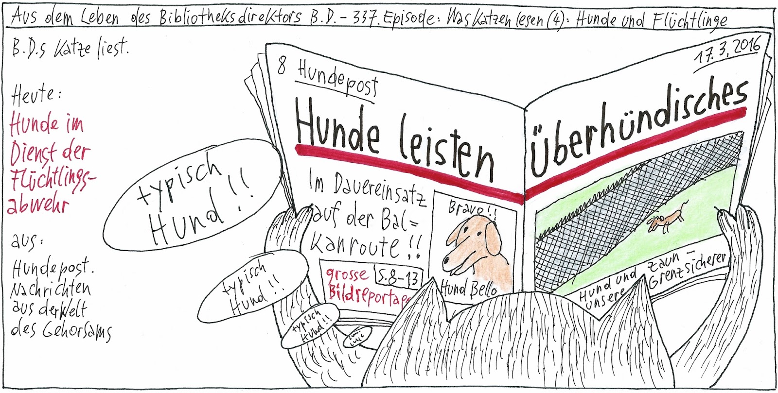 BIBCOMIC 337: Was Katzen lesen (4) Posted on 18. 03. 2016 by JP http://bibcomic.blogspot.co.at/2016/03/was-katzen-lesen-4-hunde-und-fluchtlinge.html